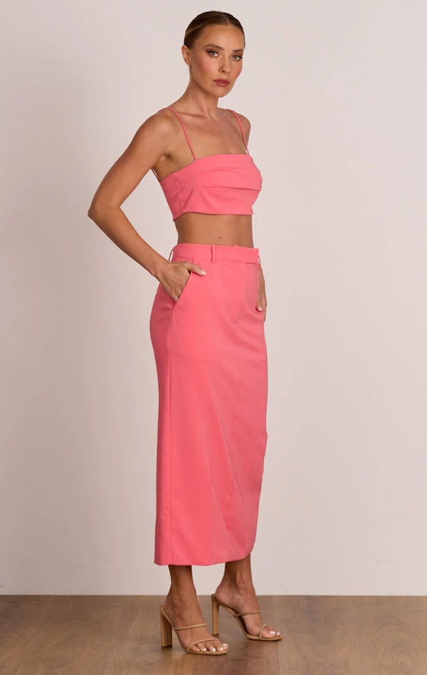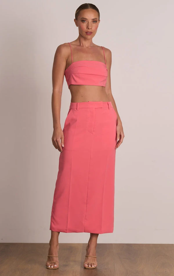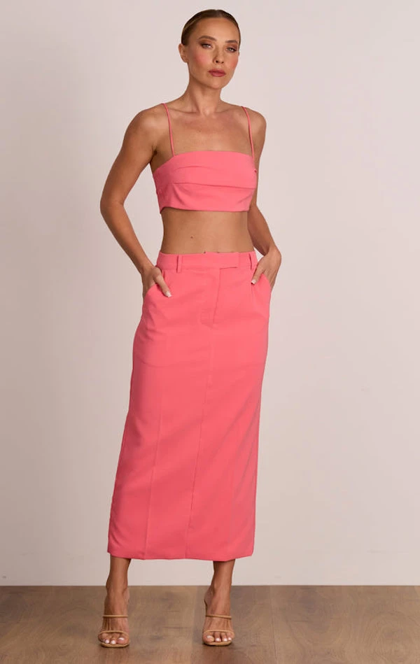 The Ace Bodice by PASDUCHAS is made from a stretch twill suiting. This understated yet a cool addition to your separates wardrobe features a square cut neckline with textural tucks that is suspended by barely there straps. Fastening at the centre back with self covered buttons this piece is perfectly paired back with the Ace Tailored Skirt.