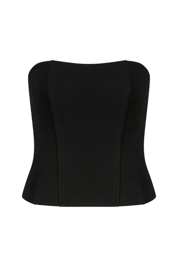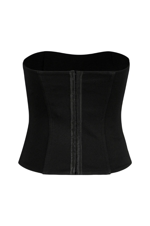 Auteur presents the Chiara Corset in classic black. This captivating strapless top is designed to make a bold statement and elevate your style with its alluring corset detail.
