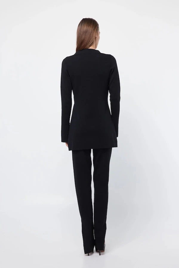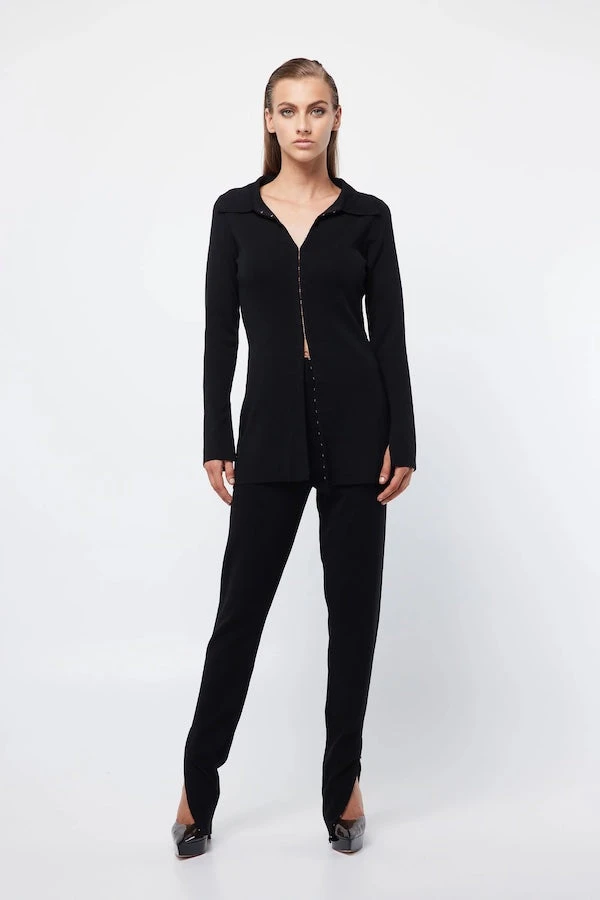 Chic and conveniently comfortable, the Mossman Detour Knit Top is crafted from a medium weight knit fabrication. The black top sports a collared neckline, hook and eye closures and a long line body length. Style it with the Detour Knit Legging and a sneaker for your next lunch date.