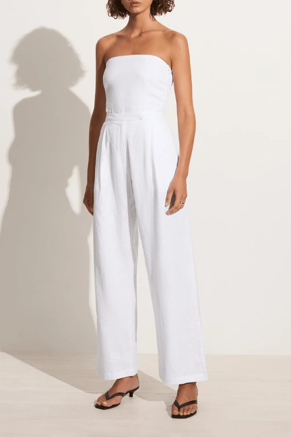 Discover a wardrobe essential in the Praiyah Bodice. Designed for timeless dressing and easy-wear, the Praiyah boasts a strapless neckline, gathered sides and a shirred back for extra comfort. Considerately crafted from responsibly sourced linen and hand-dyed in White, the Praiyah is a staple addition that effortlessly styles with linen trousers and strap heels.