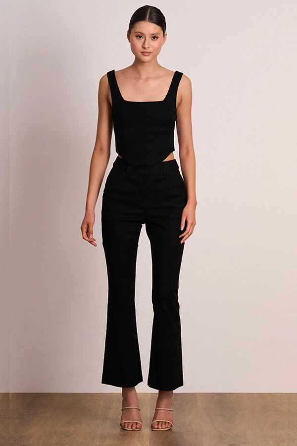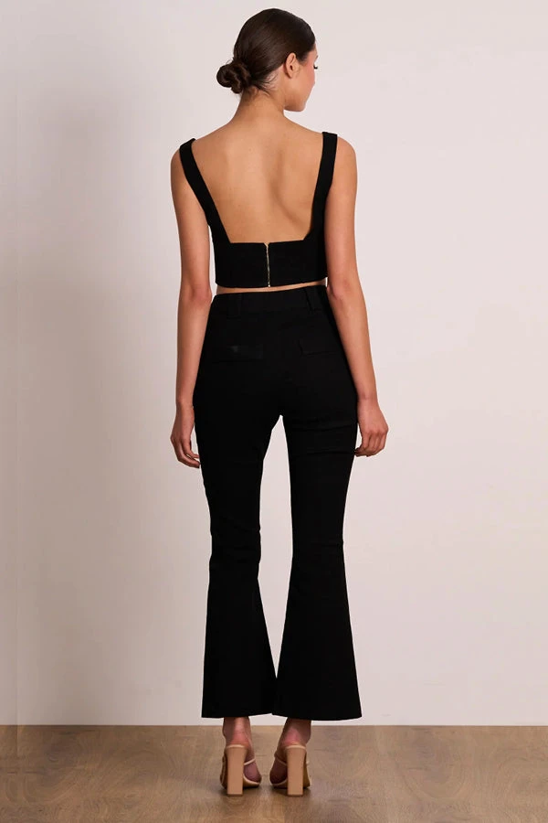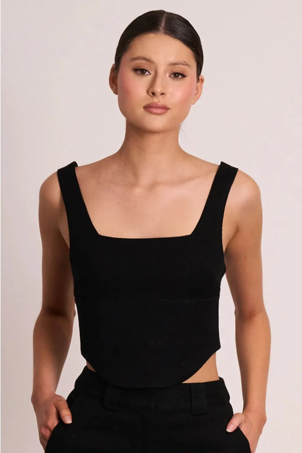 The Fever Bodice by PASDUCHAS is made from a stretch dobby cotton with an enzyme wash finish. A trend piece capturing 90’s nostalgia fitting closing to the body with a square neckline and wide set straps. Cropped at the waist with a front scooped hem to flatter. Deep angular back is fastened with an open ended exposed zipper. This piece is a wardrobe staple and pairs back perfectly with the Fever Pant.