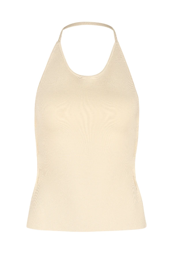 Greta Bib Top Cream is the perfect way to make a statement without overdoing it. With a sultry halter neckline and open back, you can be sure to turn heads in this sexy top.