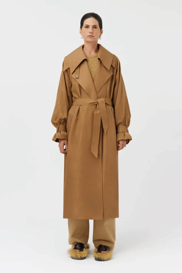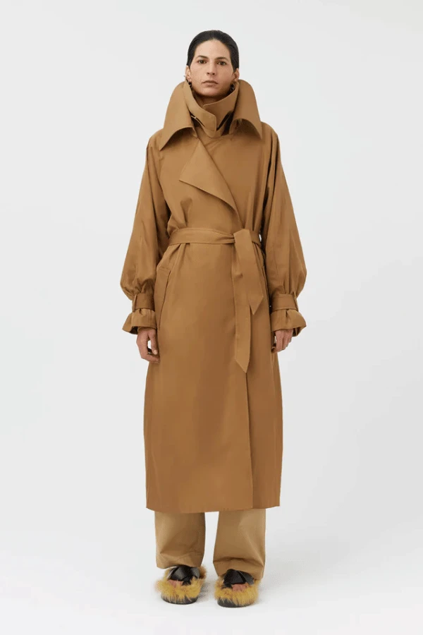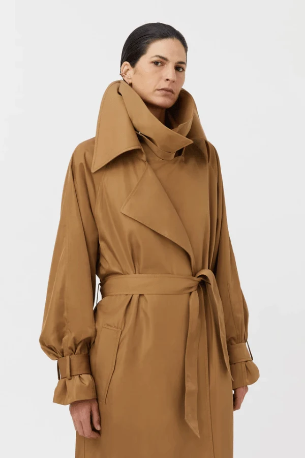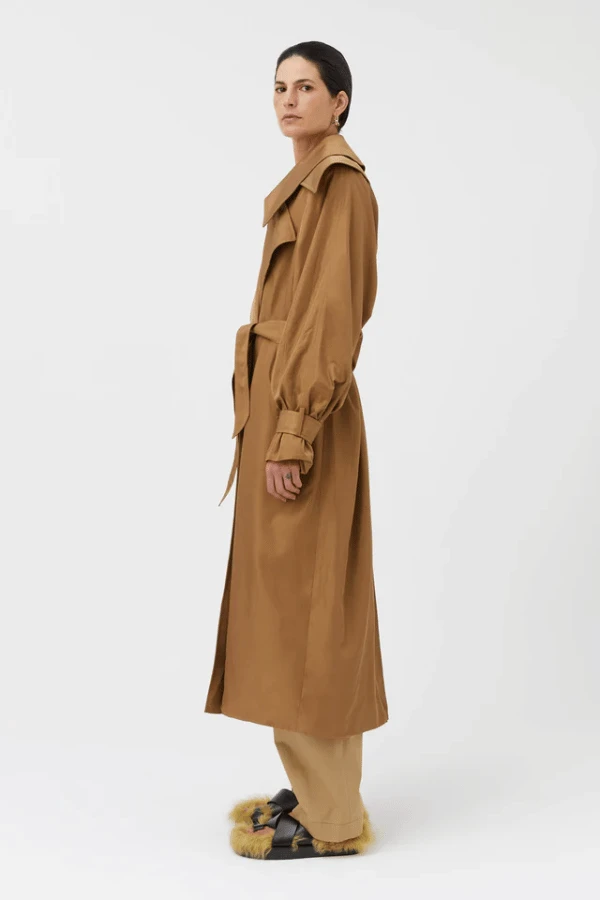 CAMILLA AND MARC Leon Trench Coat in Sahara Brown.