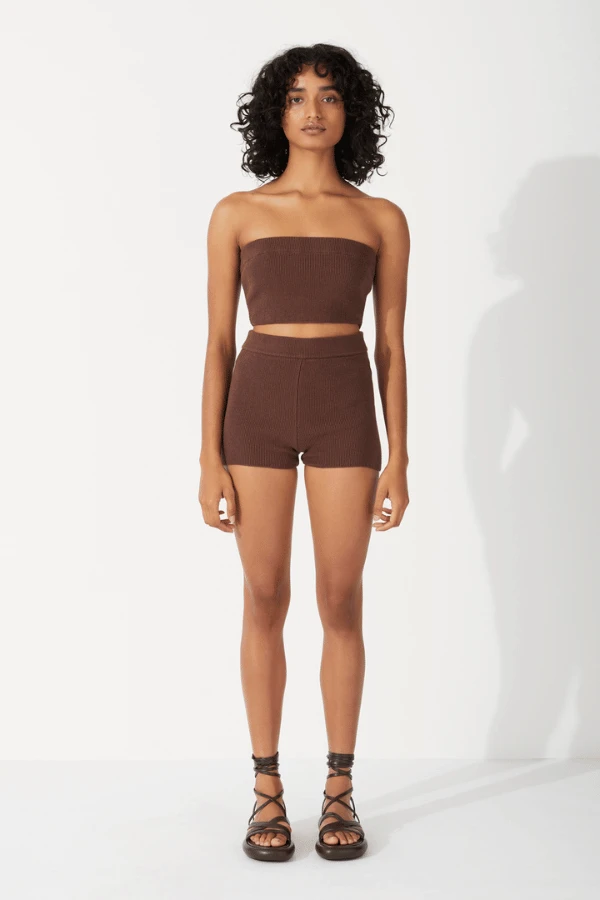 The Chocolate Organic Cotton Blend Knit Bandeau by Zulu & Zephyr features an elasticated neckline for support, and a versatile cropped length, in a rich chocolate brown, soft stretchy knit