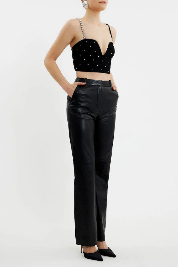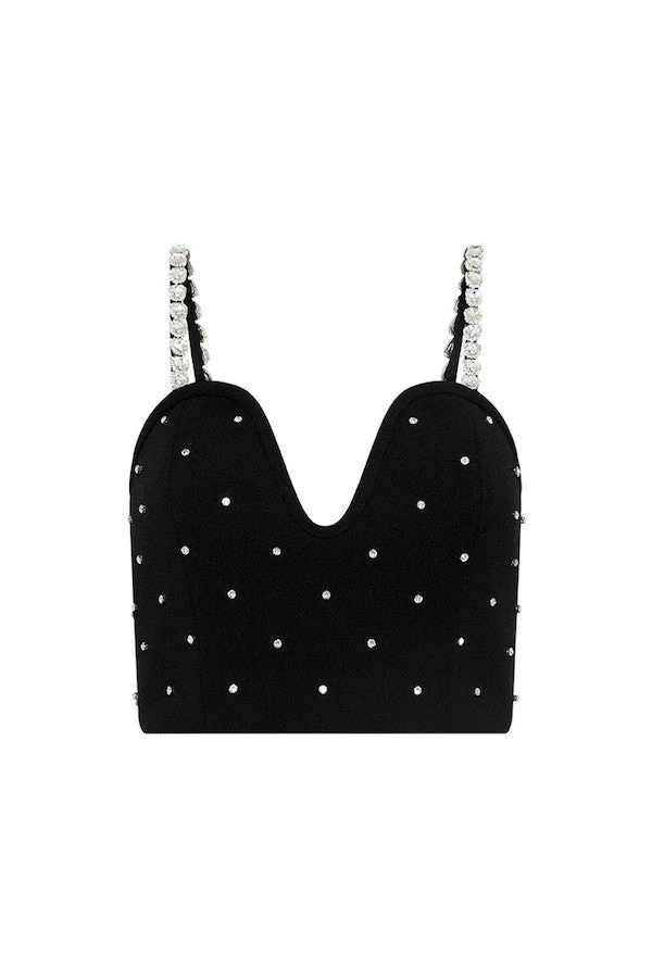 Rebecca Vallance is designed with a plunging sweetheart neckline to enhance the décolletage. The sophistication of this top is enhanced by the carefully hand-embellished diamantes, the straps with heart-shaped diamante trim and subtle back zip fastening. Style with everything from high-waisted leather pants to tailored black trousers.