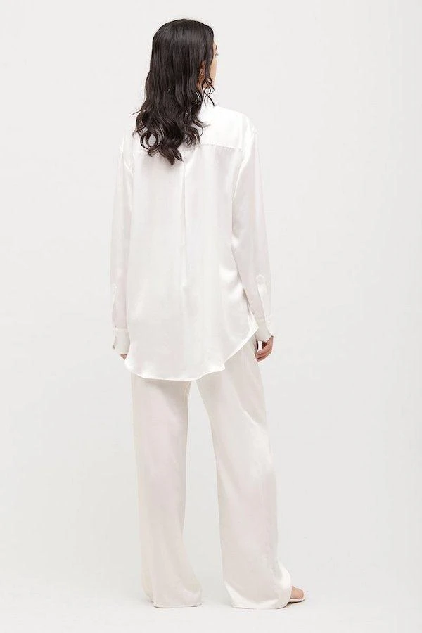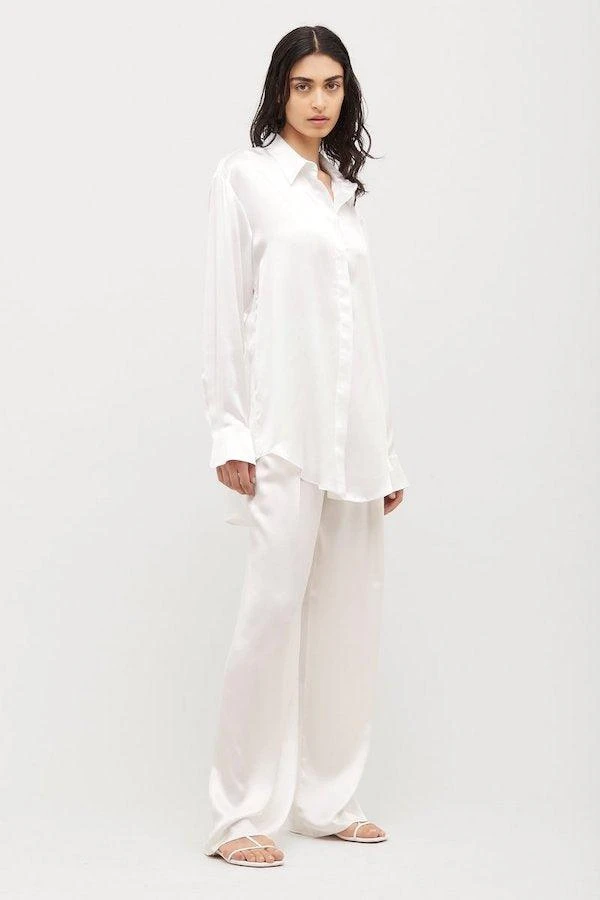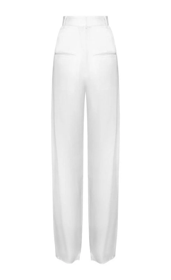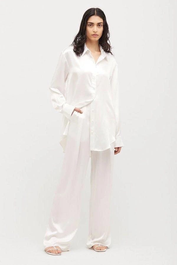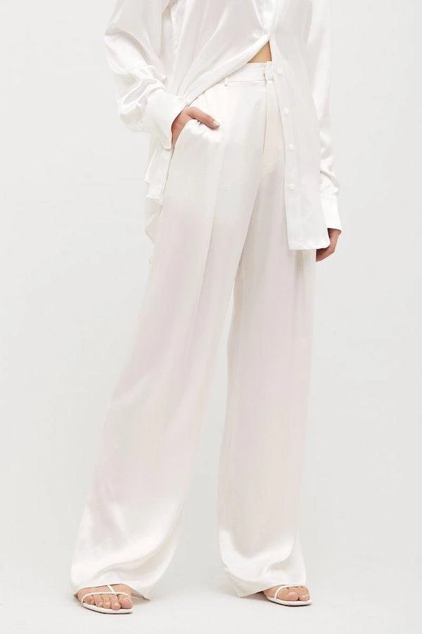 Michael Lo Sordo’s silk-satin pants drape and fan beautifully through the leg for a look that’s perfect for glamorous evening events. Elegant and minimal, they’ll be
