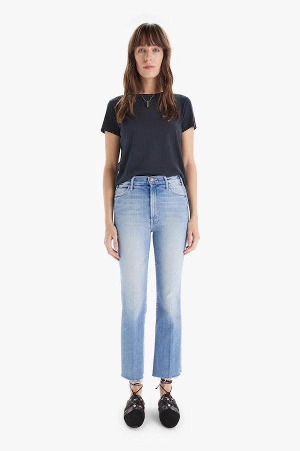 See ya. This bestselling high-rise flare has an ankle-length inseam and a raw hem. Cut from soft stretch denim, Au Revoir is a light blue wash.