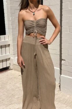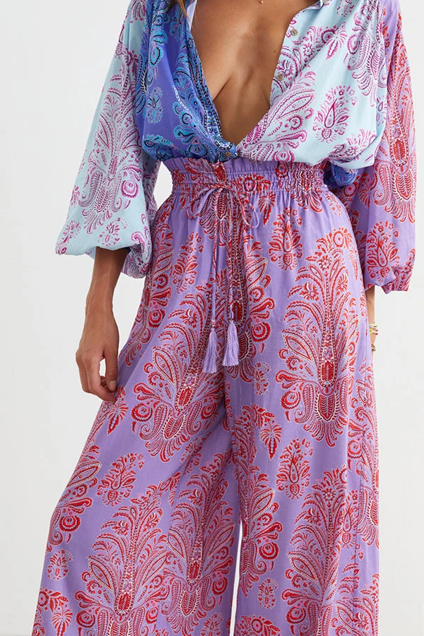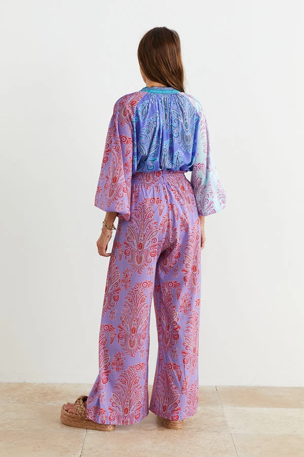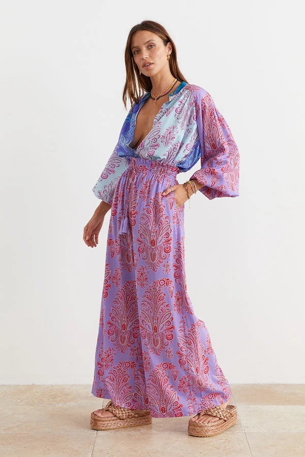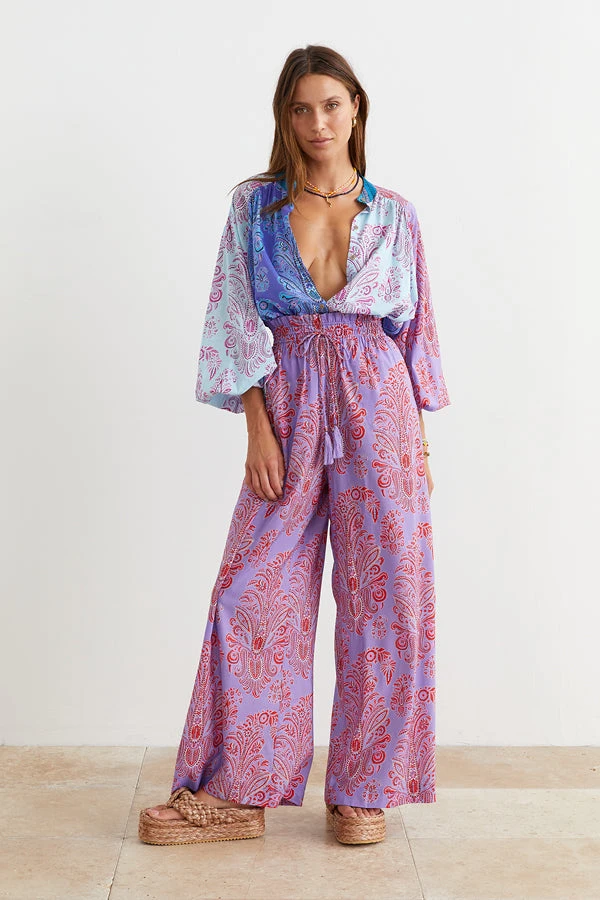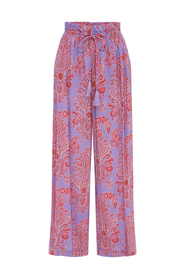 Boteh featuring high-waist & full length pant with soft elastic paper bag waist and mock waist tie.